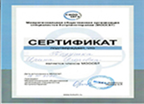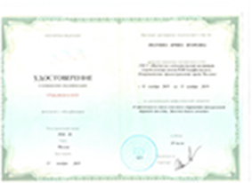 - 2019г - повышение квалификации по программе «Спастичность после очагового поражения центральной нервной системы. Диагностика и лечение» на базе ГБУЗ «Научно-исследовательский институт скорой помощи имени Н.В.Склифосовского Департамента здравоохранения города Москвы»