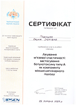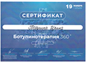 - 2020г - обучение: тематический курс «Лечение болевых синдромов ботулиническим токсином типа А» г.Москва